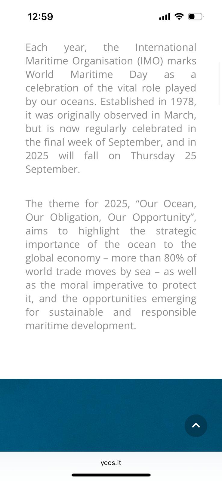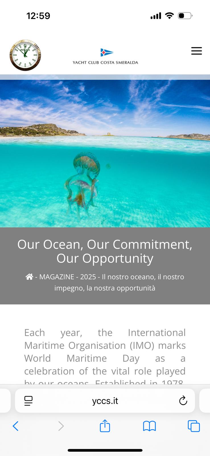 To increase awareness of wildlife and habitat protection, during the Maxi Yacht Rolex Cup we have published, in the YCCS Magazine, an article about World Maritime Day 2025, which explains why the ocean is so important, why we must protect its biodiversity, and how we can promote sustainable use of the sea