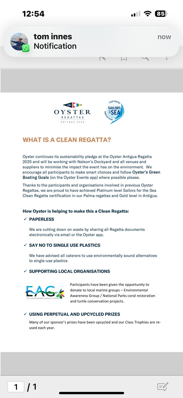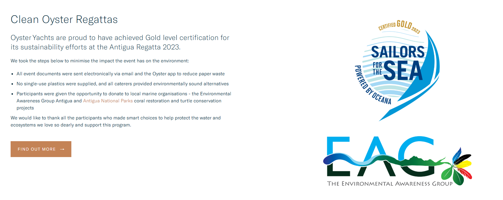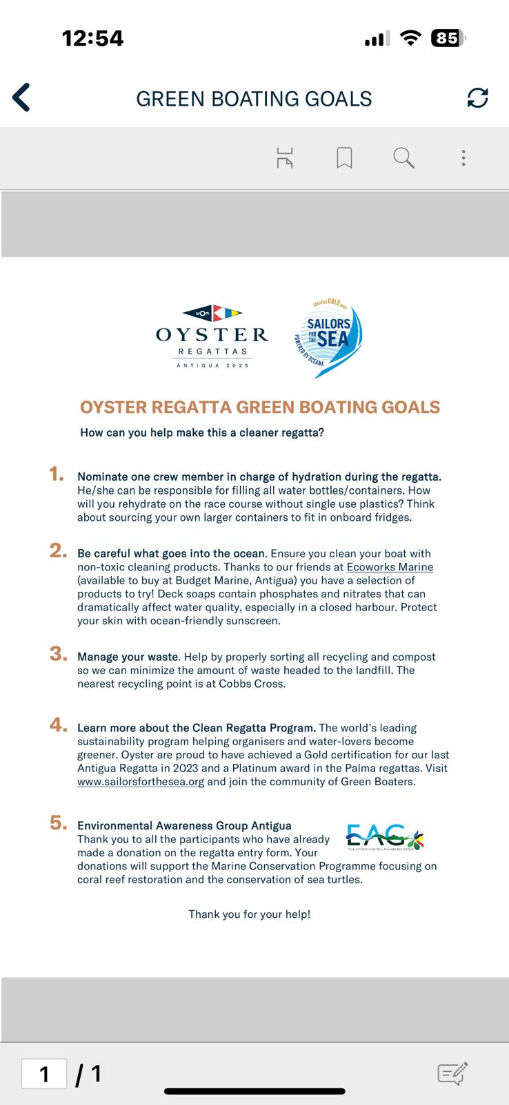 Details of our commitment to delivering a clean regatta and some of the initiatives we followed are listed on the Antigua Regatta webpage on the Oyster Yachts website. This information will be updated once we receive the 2025 SFTS badge.