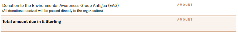 EAG - Environment Awareness Group and Antigua National Parks were two charities we were supporting during the regatta. We included a box on the regatta entry forms where participants can donate money to these charities. Through this method, we raised a total of 1500 UK pounds which goes directly to the charities.
