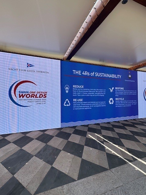 We have agreed with local institutions and organizations to promote the 4Rs of sustainability. During the "The Nations League - Swan One Design Worlds" regatta, these messages were displayed on our ledwall