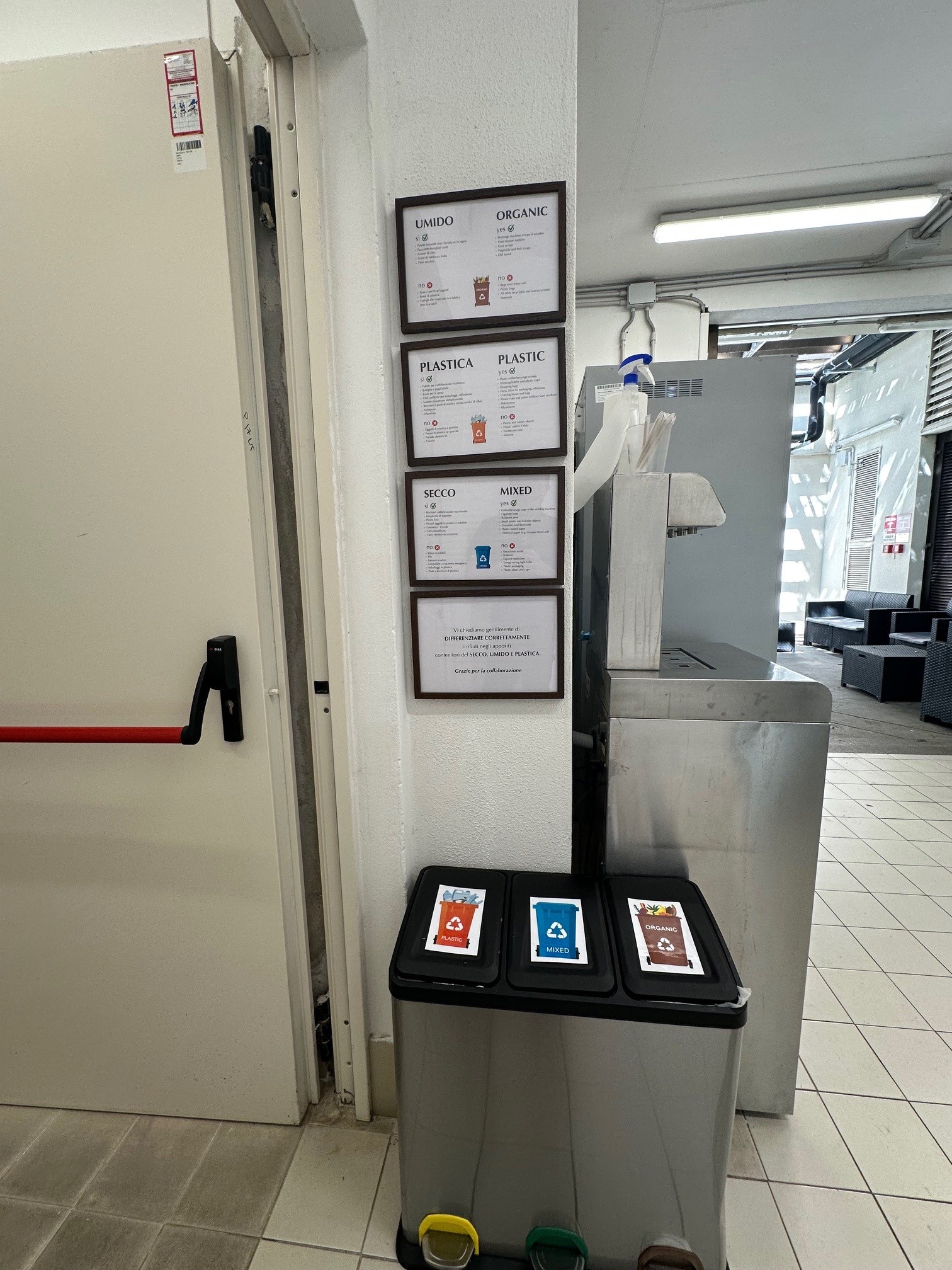 All the trash bins had signs for waste separation